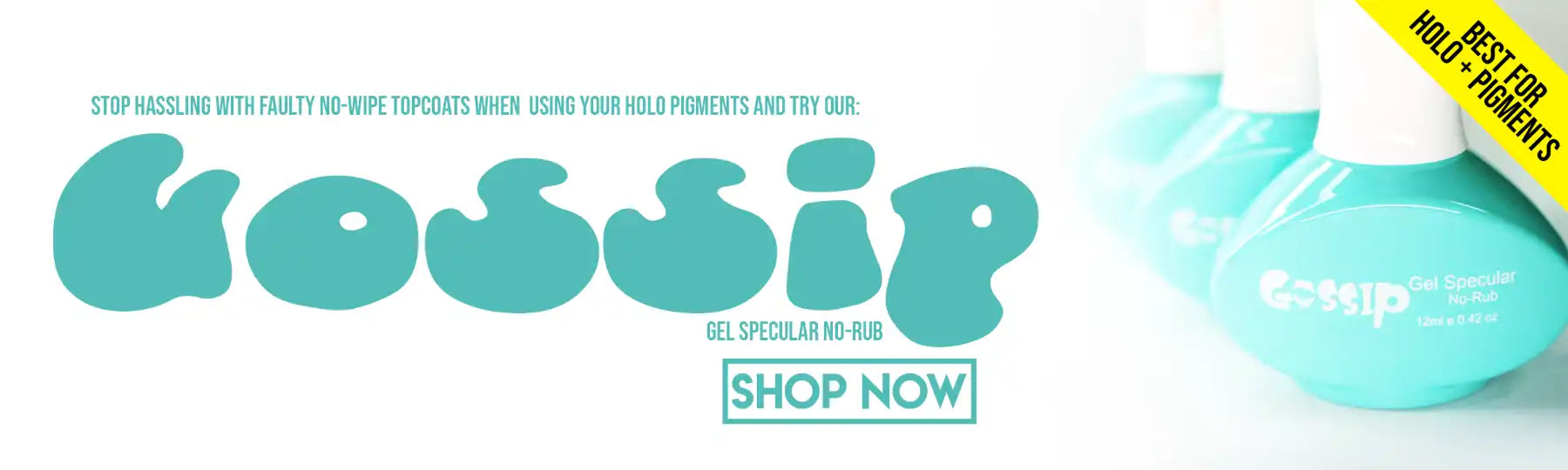 View full detailsGossip gel is specially formulated for chrome or other pigments. Use it as a base for our highly popular Holo 1g pigment, chrome, Unicorn pigment, ...